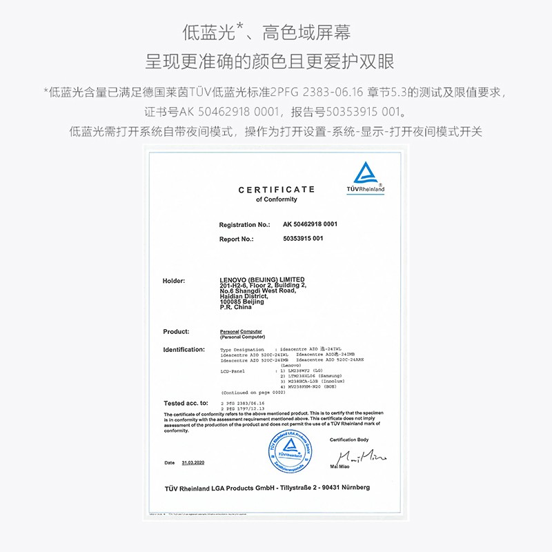 联想(Lenovo)AIO520C 23.8英寸 一体机台式电脑 商务办公家用电脑 i3-8145U 8G 256G SSD 黑色