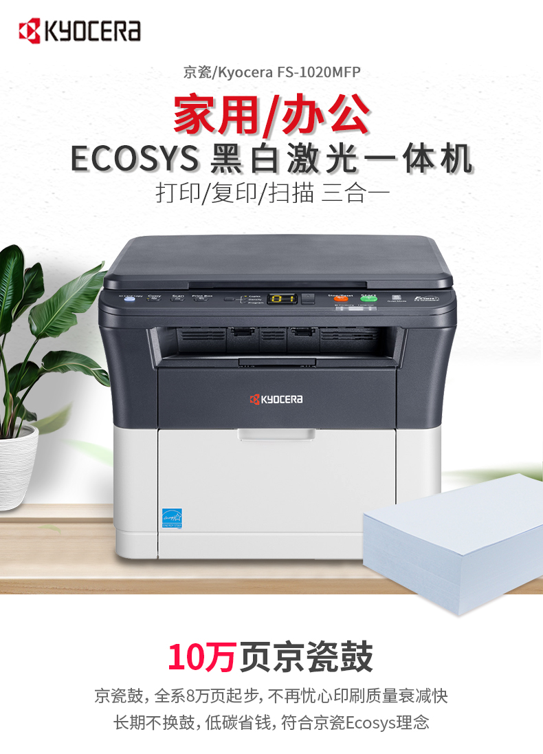 京瓷(KYOCERA)FS-1020MFP 黑白激光多功能一体机 (打印 复印 扫描)