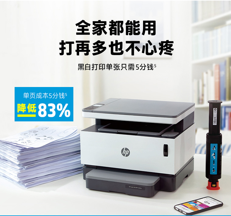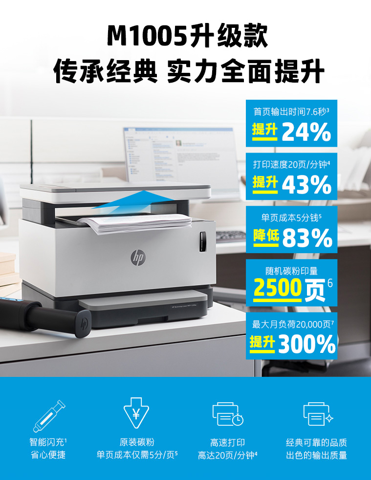 惠普(HP)创系列NS1005c 智能闪充大粉仓一体机 激光多功能 打印复印扫描 M1005升级