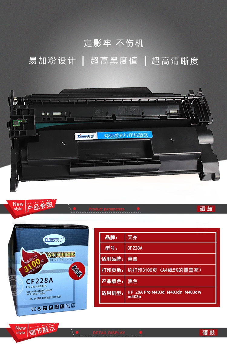天亦Tiany 228a硒鼓 适用惠普403d硒鼓 m403dn m403dw m403n m427dw m427fdn m427fdw打印机cf228a硒鼓