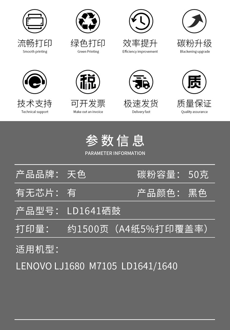 天亦 Tiany 适用联想M7105硒鼓Lenovo LJ1680 3206W 3208 3218 LD1641打印机粉盒墨