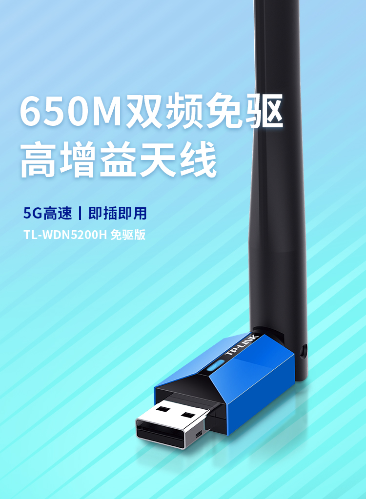 TP-LINK USB无线网卡 TL-WDN5200H免驱版 AC650双频5G网卡 笔记本台式机电脑无线接收器随身WiFi发射器