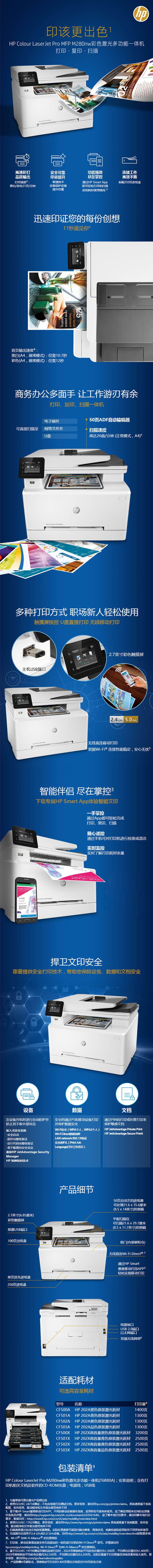 惠普(HP) Colour LaserJet Pro M280nw A4彩色激光多功能一体机(打印、复印、扫描)