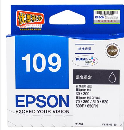 爱普生(Epson)T1091黑色墨盒 C13T109180(适用ME30/300/360/510/600F/650FN/700FW)