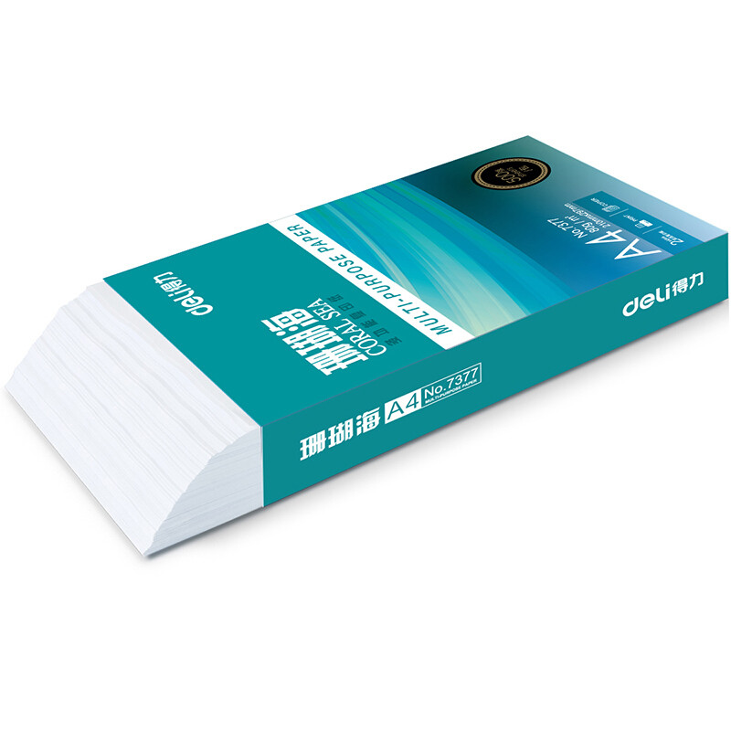 • 商品名称:得力(deli) 7378 A4 珊瑚海复印纸 80g 500张/包 5包/箱