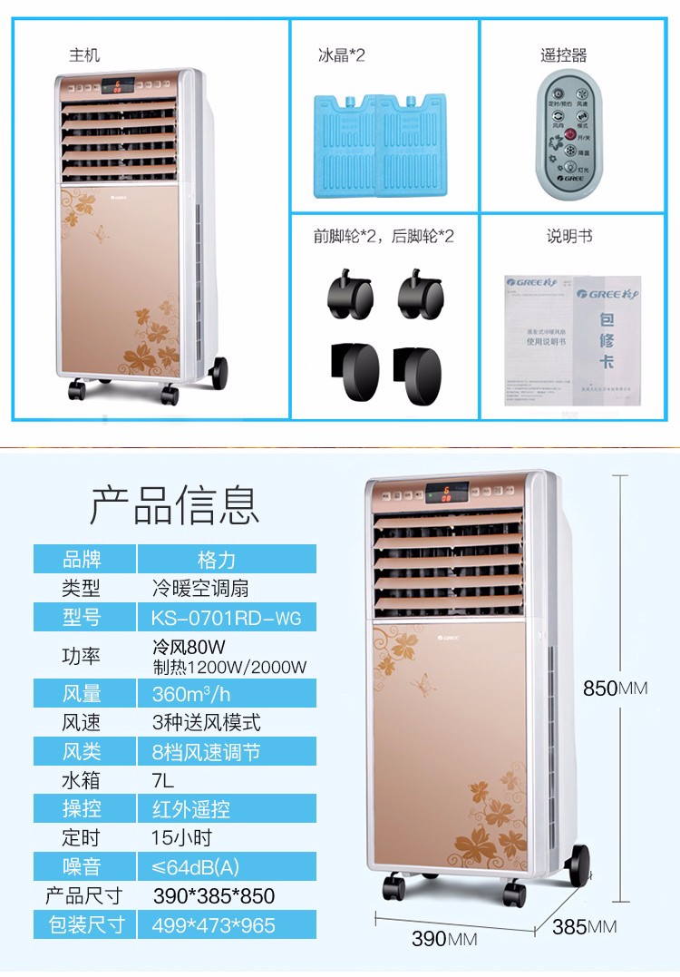 格力冷风扇_冷暖两用 8档风速_KS-0701RD-WG 银色+香槟金_A0011007800