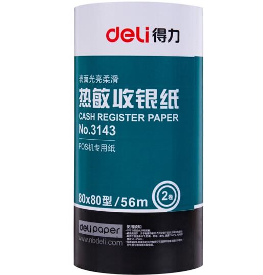 • 商品名称:得力(deli)80mm*80mm热敏收银纸/收银机打印纸/超市小票打印纸 56米/卷 40卷/箱 3143