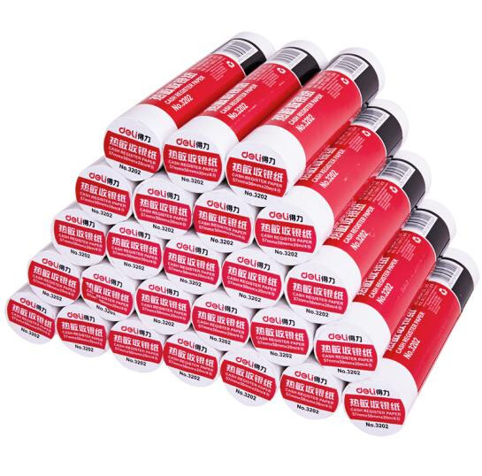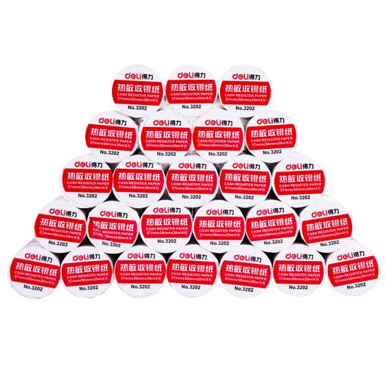 得力(deli)57mm*50mm热敏收银纸超市小票打印纸 收银机打印纸 19米/卷 100卷/箱3202
